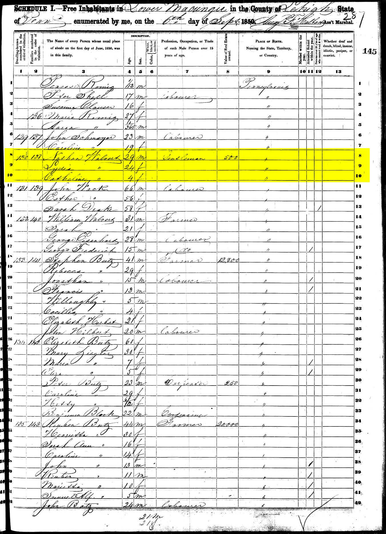 Nathan Walbert (1811-1894), born 2 Apr 1811, buried Lehigh Zion Luth Ch, of L Macungie Twsp,